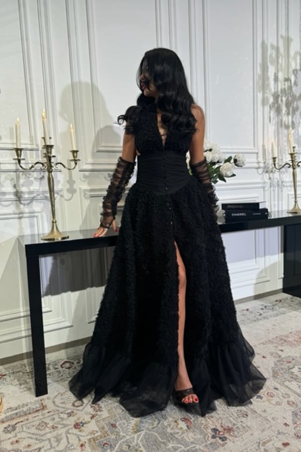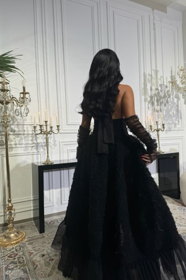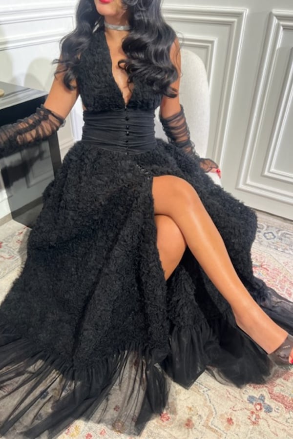 Dress with gloves.