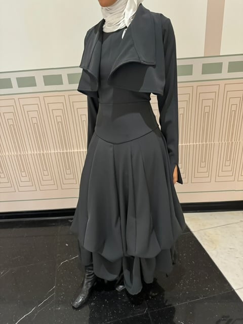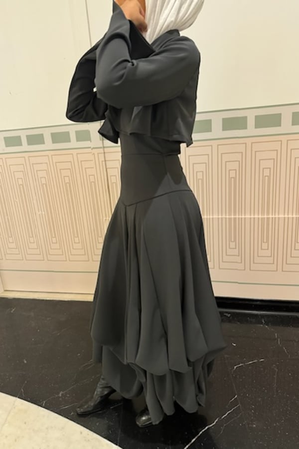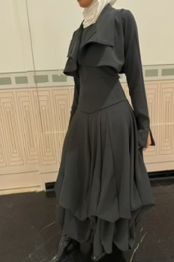 Dress with cropped jacket.