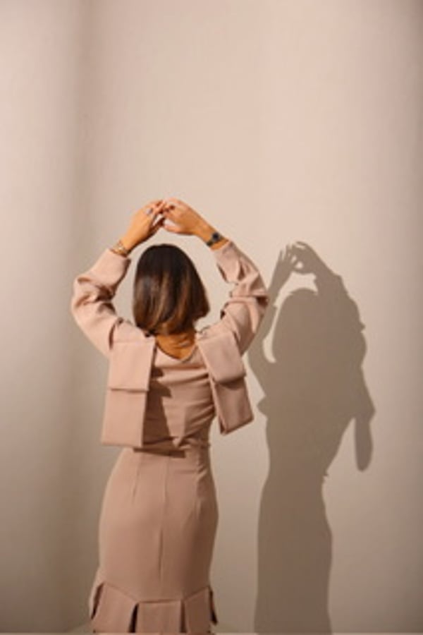 Dress with cropped jacket.