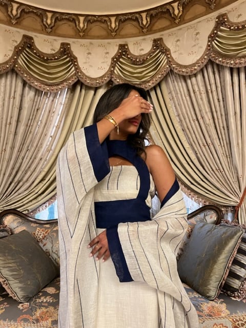 1 piece kaftan with one sleeve.